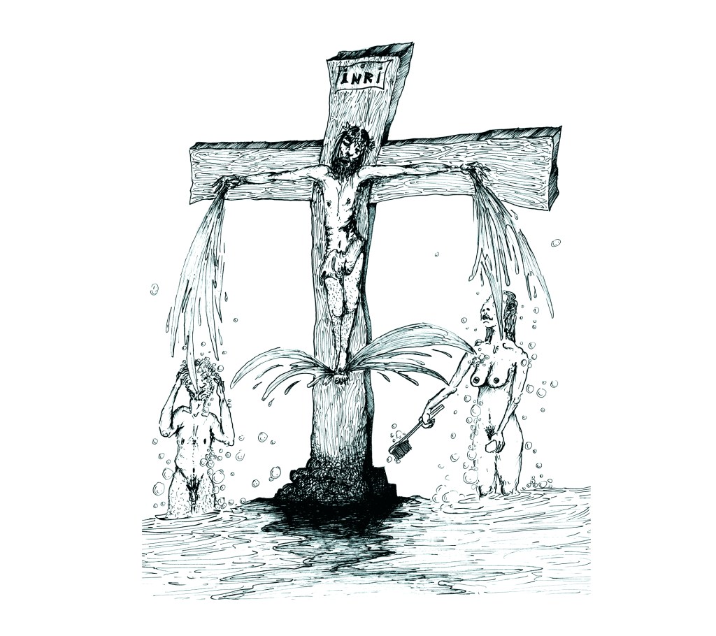 La religión y los reproches de los guardianes de la educación infantil también se toparon en la infancia de Alfonso Barbieri, músico y artista plástico argentino. Con una respuesta más osada dibujó muchos Cristos y, en lugar de INRI puso los nombres de algunos compañeritos del jardín.