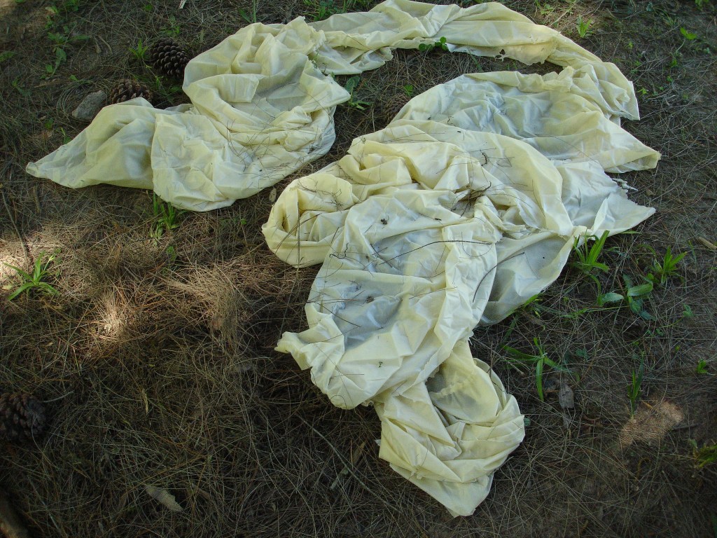 Papel de árbol devenido en un manto de 30 metros de largo que es intervenido por transcripciones de pensamientos. Como un gran velo, esta acción objeto-sujeto intenta dialogar en la brecha existente entre el hombre y la naturaleza.
