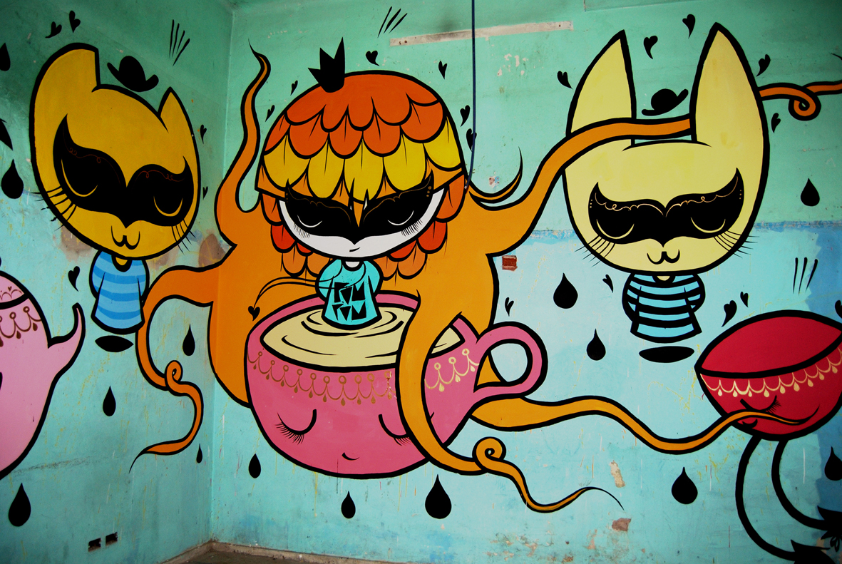 Una chica que eligió el Street Art como soporte por la libertad que le dá para expresar sus coloridos diseños en los muros grises de la ciudad.